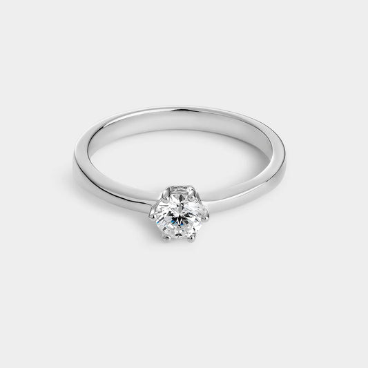 Anillo solitario de plata con circonita de 4,5 mm montada sobre 6 garras