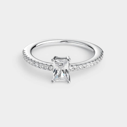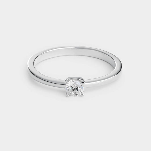 Anillo solitario de plata con circonita de 3,8 mm montada sobre 4 garras