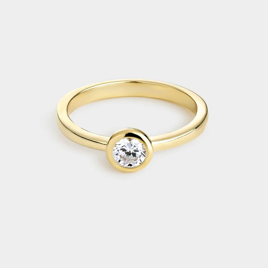 Anillo solitario de plata chapado en oro amarillo con circonita de 4,5 mm engastada en bisel