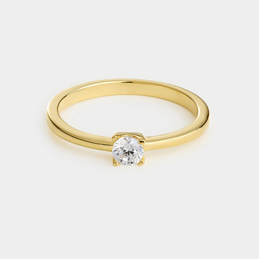 Anillo solitario de plata chapado en oro amarillo con circonita de 3,8 mm montada sobre 4 garras